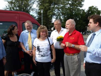 Begrüßung des 10.000 Fahrgastes vom Verein BürgerBus Brieselang, 17. Juli 2009