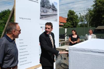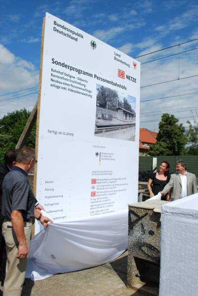 Baubeginn für den Einbau eines Personenaufzuges am Bahnhof Dallgow-Döberitz, 15. Juli 2009