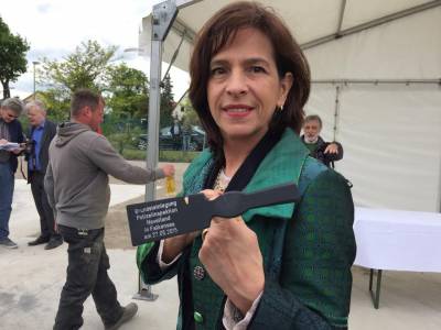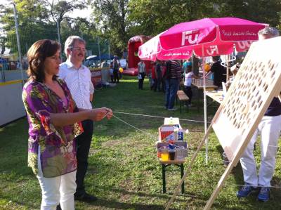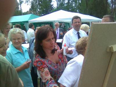 Barbara Richstein als Jurymitglied bei der Preisverleihung des Modellbauwettbewerbs bekannter Gebäude während des Festes "50 Jahre Stadtrechte Falkensee".