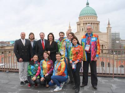 Siegermannschaft v.l. Robert Busch (Landessportbund Brandenburg e.V.), Doreen Busch, Barbara Richstein (MdL), Roger Lewandowski (Vizelandrat des Landkreises HVL)