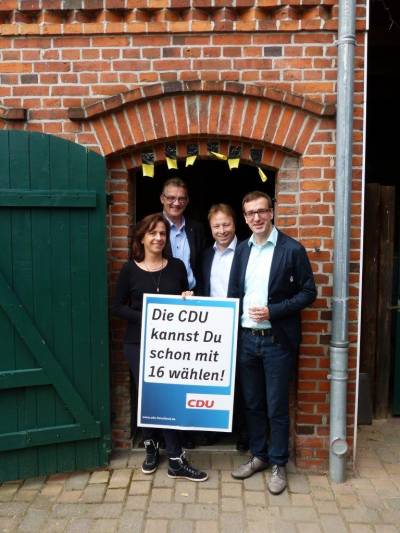 Barbara Richstein MdL, David McAllister( Spitzenkandidat der CDU Deutschlands zur Europawahl), Katherina Reiche MdB (Parlamentarische Staatssekretärin beim Bundesminister für Verkehr und digitale Infrastruktur), Frank Bommert MdL (v. l. n. r.)