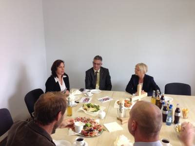 Das Gespräch mit (von links nach rechts) Uwe Feiler, MdB (Vorsitzender der MIT-Brandenburg), Jens Funke (Vorsitzender der MIT Havelland), Barbara Richstein, MdL (Bürgermeisterkandidatin in Falkensee), Ingbert Liebing, MdB (Bundesvorsitzender der Kommunalpolitischen Vereinigung der CDU/CSU und Kommunalpolitischer Sprecher der CDU/CSU-Bundestagsfraktion), Thomas Zylla (1. Beigeordneter und Dezernent das Baudezernat in Falkensee).