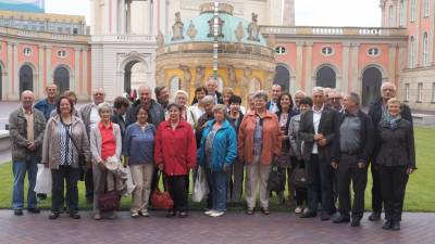 Besichtigung Helenenkapelle, Hohenlychen (von links: Henryk Wichmann MdL; Barbara Richstein MdL; Matthias Bensch, Vors. der Senioren Union Lychen; Sven Klemckow, Bürgermeister der Stadt Lychen).