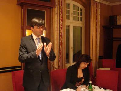 Der 1. Sekretär der Israelischen Botschaft und Außenpolitische Berater, Herr Asaf Ichilevich, hält den Vortrag zum Thema \"Israel nach den Wahlen. Perspektive und Herausforderung\" im Restaurant Kronprinz in Falkensee.